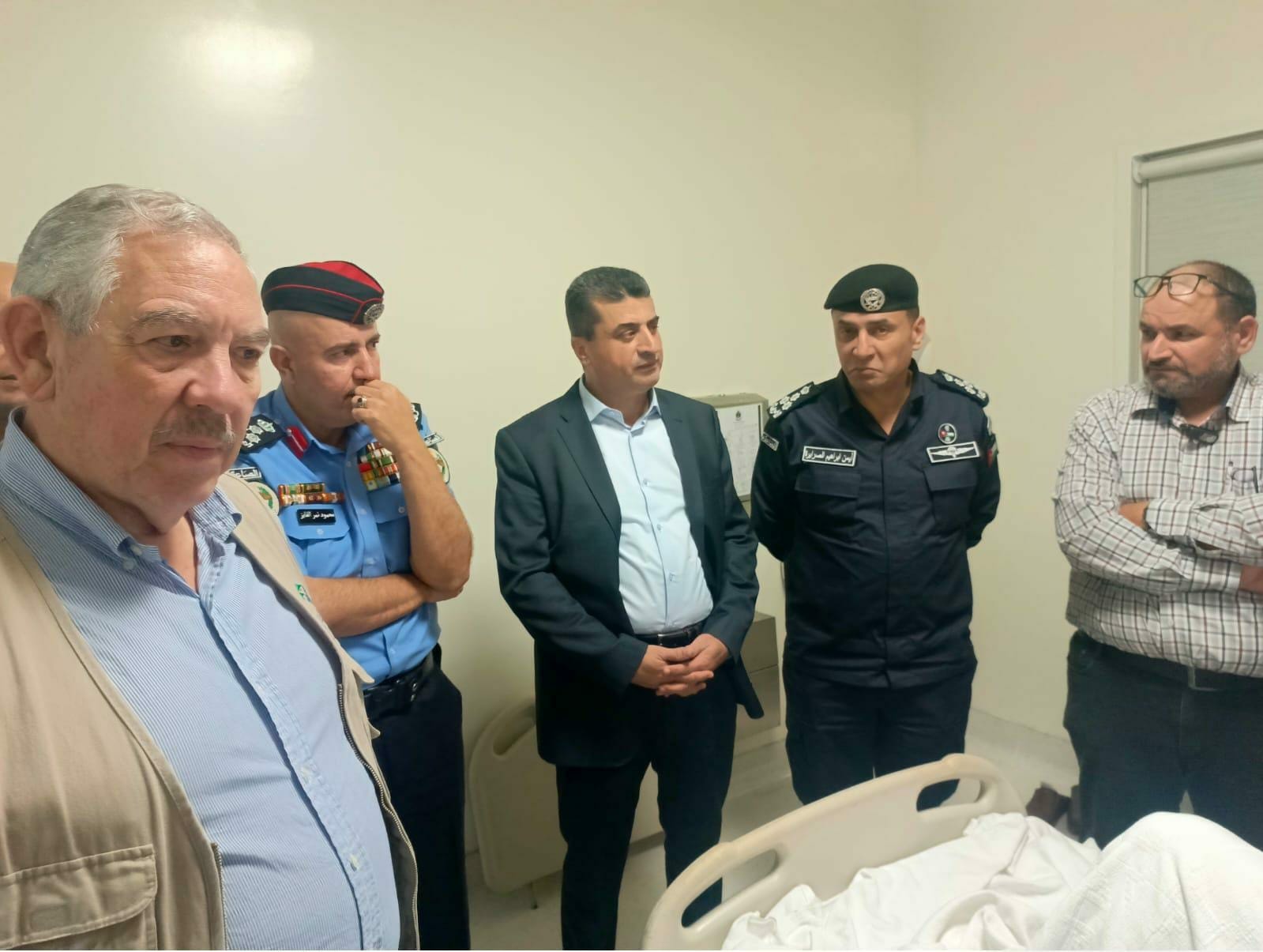 واطلع المجالي والعوايشة خلال الزيارة على الحالة الصحية للمصابين، واستمعا إلى إيجاز من الكوادر الطبية حول أوضاعهم الصحية، والإجراءات العلاجية المتبعة لضمان تعافيهم الكامل مؤكدين حرص الدولة بكافة أجهزتها على توفير الرعاية الصحية الفورية والشاملة للمصابين، وتقديم كل ما يلزم لضمان سلامتهم.